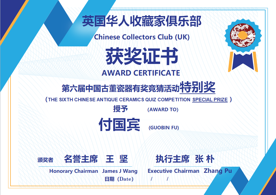 英国华人收藏家俱乐部决定颁发特别奖给付国宾,以感谢他在本次有奖竞猜活动后,与大家分享他的"竞猜路径"。