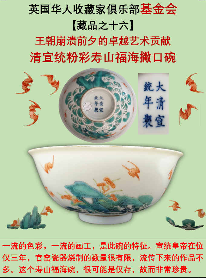 清宣统粉彩寿山福海撇口碗 【藏品之十六】