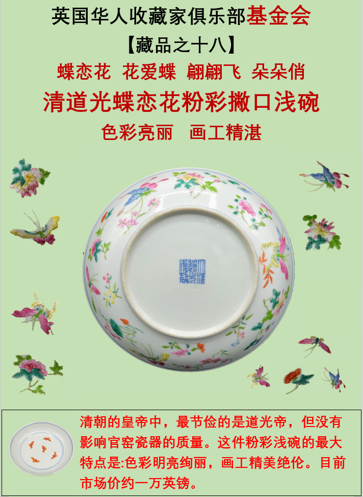 清道光蝶恋花粉彩撇口浅碗【藏品之十八】