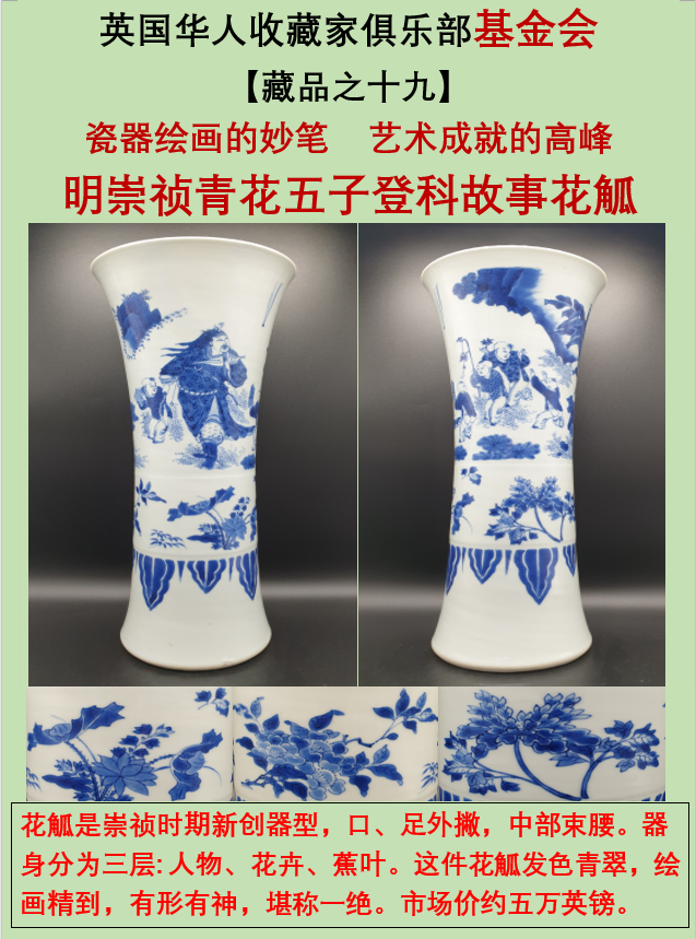 明崇祯青花五子登科故事花觚【藏品之十九】