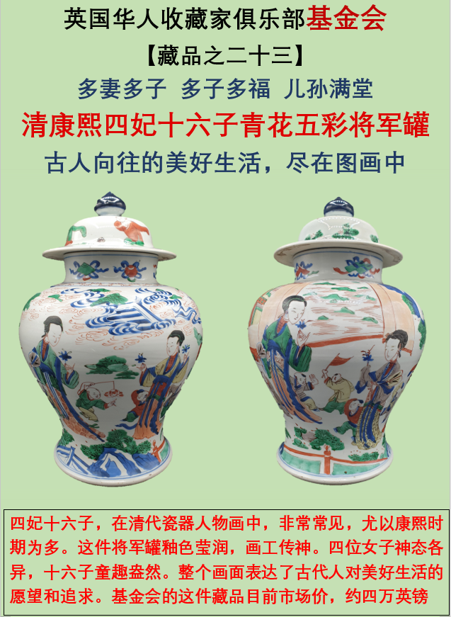清康熙四妃16子青花五彩将军罐【藏品之23】