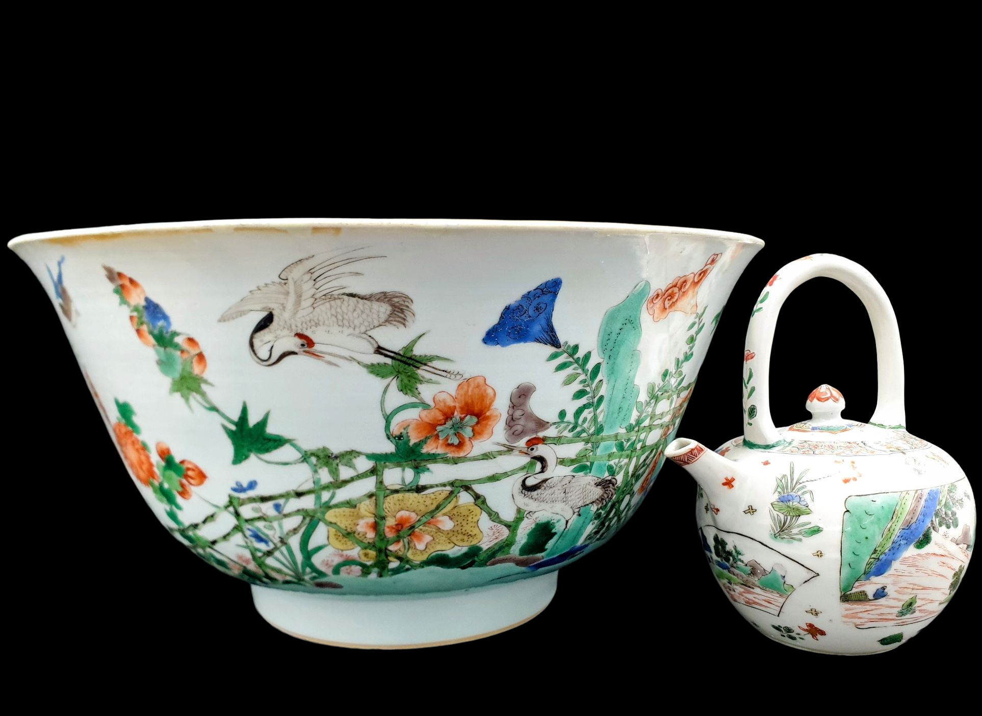 康熙仙鹤花鸟大碗,开光山水壶【藏品之40】
