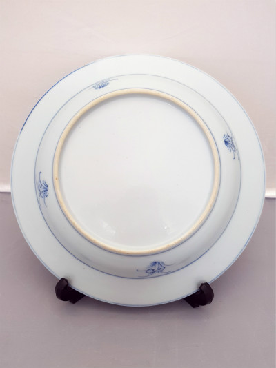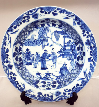 清雍正(1723-1736)青花西厢记人物故事折沿盘,直径21.5CM, £400