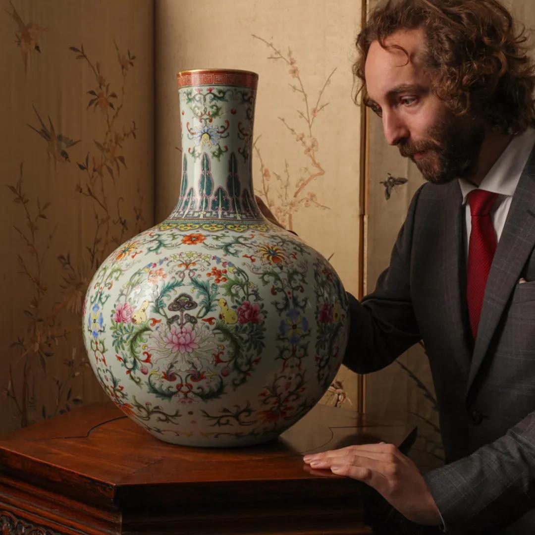 2020年11月18日,英国伦敦齐仕阁(Chiswick Auctions)亚洲艺术拍卖第299号拍品,清乾隆粉彩缠枝莲纹天球瓶,青花[大清乾隆年制]篆书款,以37万英镑(含佣金总价46.25万英镑)的落槌价创下齐仕阁的拍卖纪录,超过了2017年11月许乃榖手卷22.5万英镑的成交纪录。