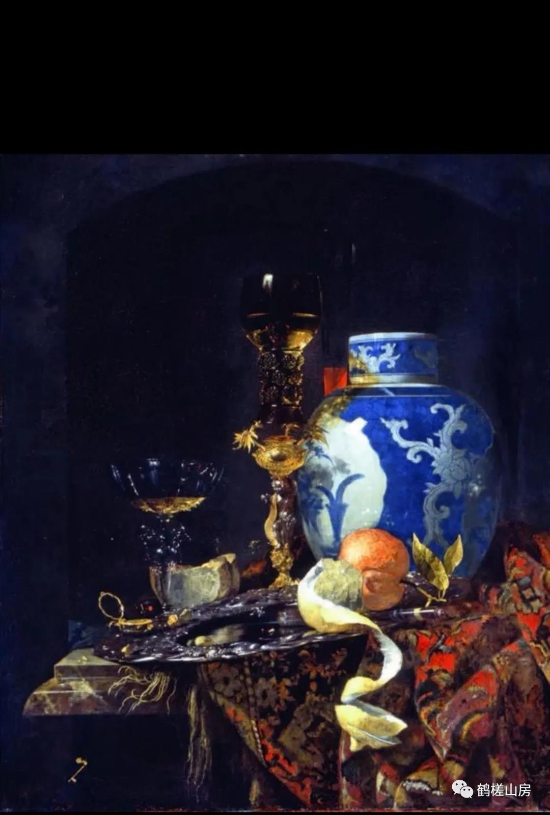 荷兰十七世纪画家威廉.卡尔弗的一幅静物画,上面一只晚明风格的青花罐子成为了绘画主题,文化影响就是相互包含,融入彼此,这个才是真正的影响。画中青花罐子上的开窗、风水等绘画风格被威廉.卡尔弗模仿的惟妙惟肖。卡尔弗在同一时期绘制了多幅和“克拉克”瓷器有关的作品流传至今。
