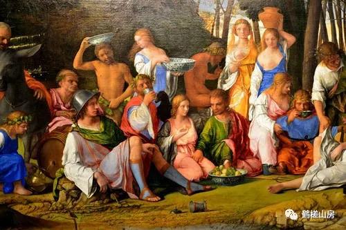 我们再举例说明17世纪以前欧洲文化中的中国瓷器元素。第一幅作品:诸神之宴。这是一幅文艺复兴时期威尼斯画派贝里尼的绘画作品。由于贝里尼的贡献,让意大利成为了文艺复兴的中心。这幅画中诸神所使用的都是中国的青花瓷器,按照瓷器的风格来判断,可以非常确定的断定为明代“永乐宣德”时期的作品,和绘画年代极端吻合。中国的瓷器能和诸神同框,说明它们的高贵程度是可想而知的。贝里尼在欧洲文艺复兴中有着无可比拟的作用和地位。