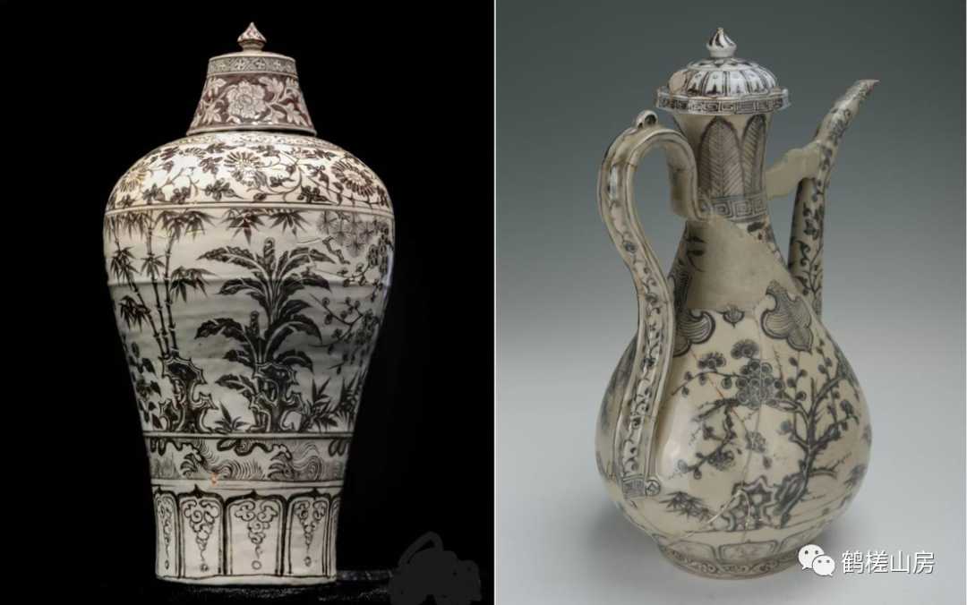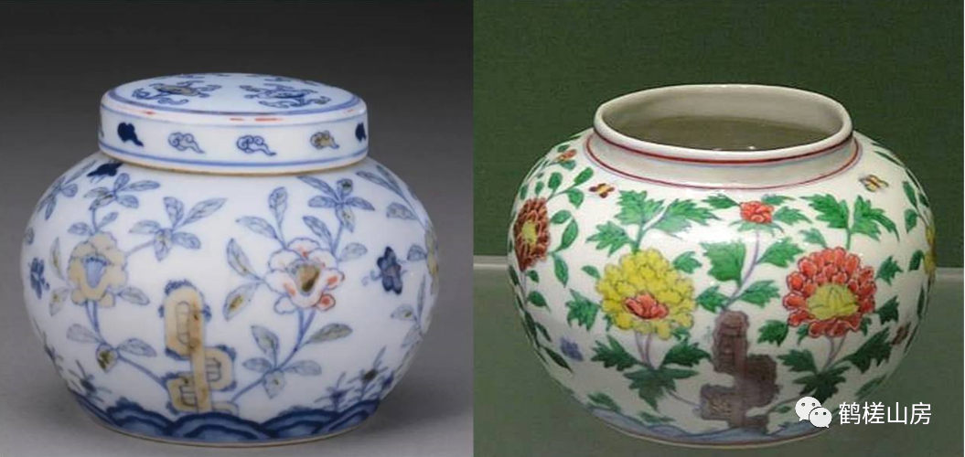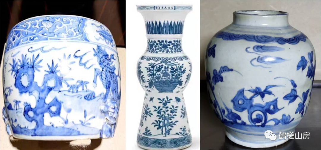 到了成化、弘治、正德,器物上的绘画还留有前朝的遗风,以至于会混淆年代的判断,但“石头”的以线条留白的画法已经不多见了,一般采用平涂和用墨彩的深淡来表现“石头”的质感。特别是成化,“石头”形状我们常常可以看到“旗幡”式或者“钥匙”的样式,特征转变明显,如果其他特征难以判断器物的年代时,这些“石头”画法完全可以用作补充的鉴定要素而事半功倍。