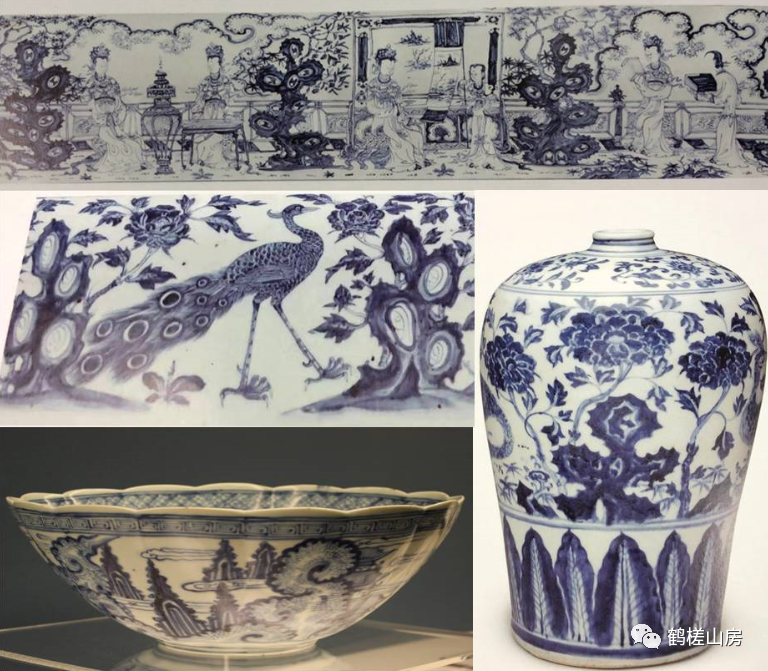 从元代到明代洪武、永宣,这一阶段是景德镇陶瓷生产的蓬勃发展阶段,瓷器绘画装饰也从初始迅速发展至成熟。从各种器物绘画装饰风格来看,装饰绘画工匠基本就是陶瓷生产的从业者,装饰绘画简单的把纸本、绢本绘画直接移植到了瓷器上,所以器物上的绘画内容虽然精彩,但绘画技法相对简单。由于瓷画结合受到了当时权贵们及域外皇族的追捧,景德镇瓷器作为一种新的绘画载体而真正出现在了世人面前并发展迅速。