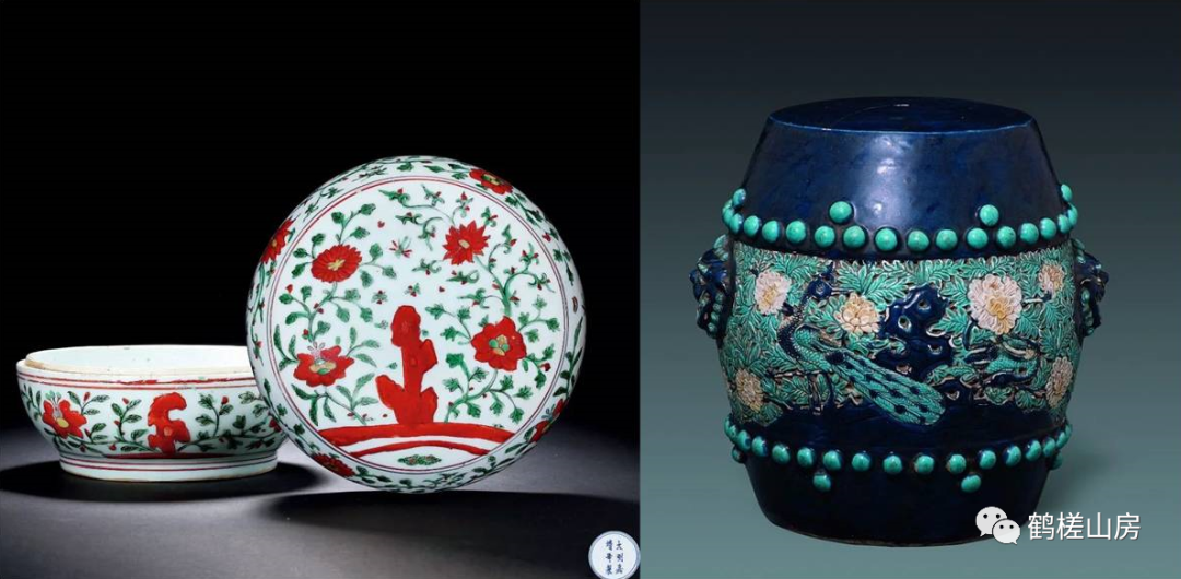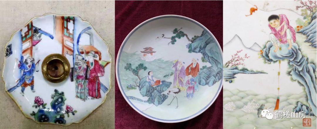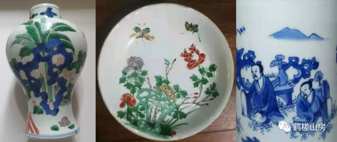 到了晚清,特别是光绪一朝,由于市场经济的进一步繁荣,各种绘画技法又一次呈现出多样性的表现。特别是模仿康熙一朝的器物层出不穷,不仅器物型制上进行模仿,而且在绘画风格上也刻意模仿,以至于许多初学者往往会迷失“老康”还是“小康”,但恰恰这个时期的许多“石头”画法往往会不经意的露出破绽。特别要提到的是,一些“石头”孔洞里面描绘了一些十字形的花草,有画蛇添足之嫌,破坏了“石头”的整体美感,成为了败笔之作,这给我们判断年代提供了依据,也是我们要掌握的鉴定要点之一。
