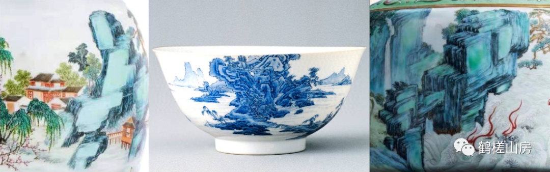 (雍正乾隆时期这种方块叠加“折带皴”画法比较特殊,时代感较强)
